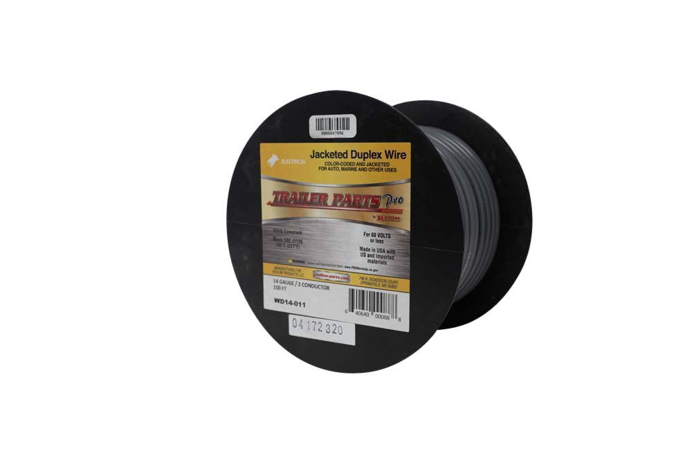 Jacketed Duplex Brake Wire, 14 Gauge, 2 Conductors, 100' Spool, Black & White in Gray Jacket