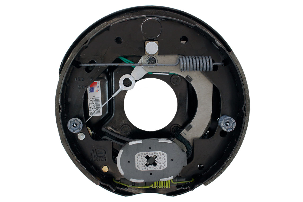 Dexter 3,500 Lbs Per Pair Capacity (1,750 Lbs Each) 10" x 2-1/4" Nev-R-Adjust® Electric Drum Brake Assembly Complete ,Right Side, 4-Bolt Mount, Black Painted Finish, Retail Boxed