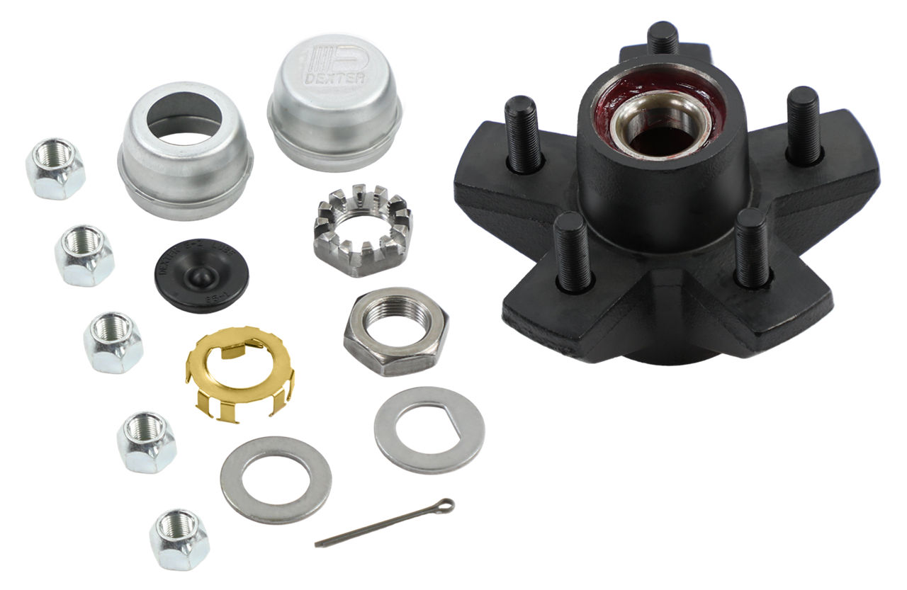 Dexter® Complete Pre-Greased Idler Hub Assembly, #84 Spindle, E-Z Lube® or Grease Lube, 3,500 Lb Capacity Per Pair, 5 on 4.5" Bolt Pattern, 1/2" Studs, , Pregreased