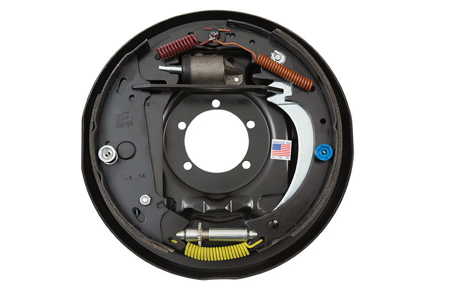 Dexter 7,000 Lbs Per Pair Capacity (3,500 Lbs Each) 12" x 2" Manual Adjust Hydraulic Free Backing Drum Brake Assembly, With Park Feature, Left Side, 5-Bolt Mount, Retail Boxed