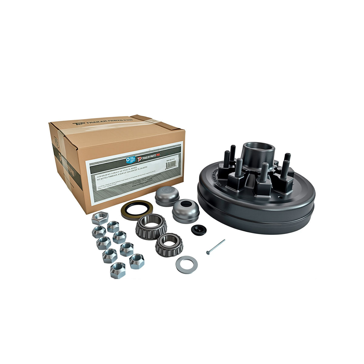 Trailer Parts Pro Hub-Drum Kit, 7,000 Lbs Capacity (3,500 Lbs Each), 8 on 6.5"" Bolt Pattern, 5/8" Studs. Comes with Bearings, Grease Seal, Grease Caps and Plug, Wheel Nuts, Spindle Washer and Cotter Pin. Retail Boxed