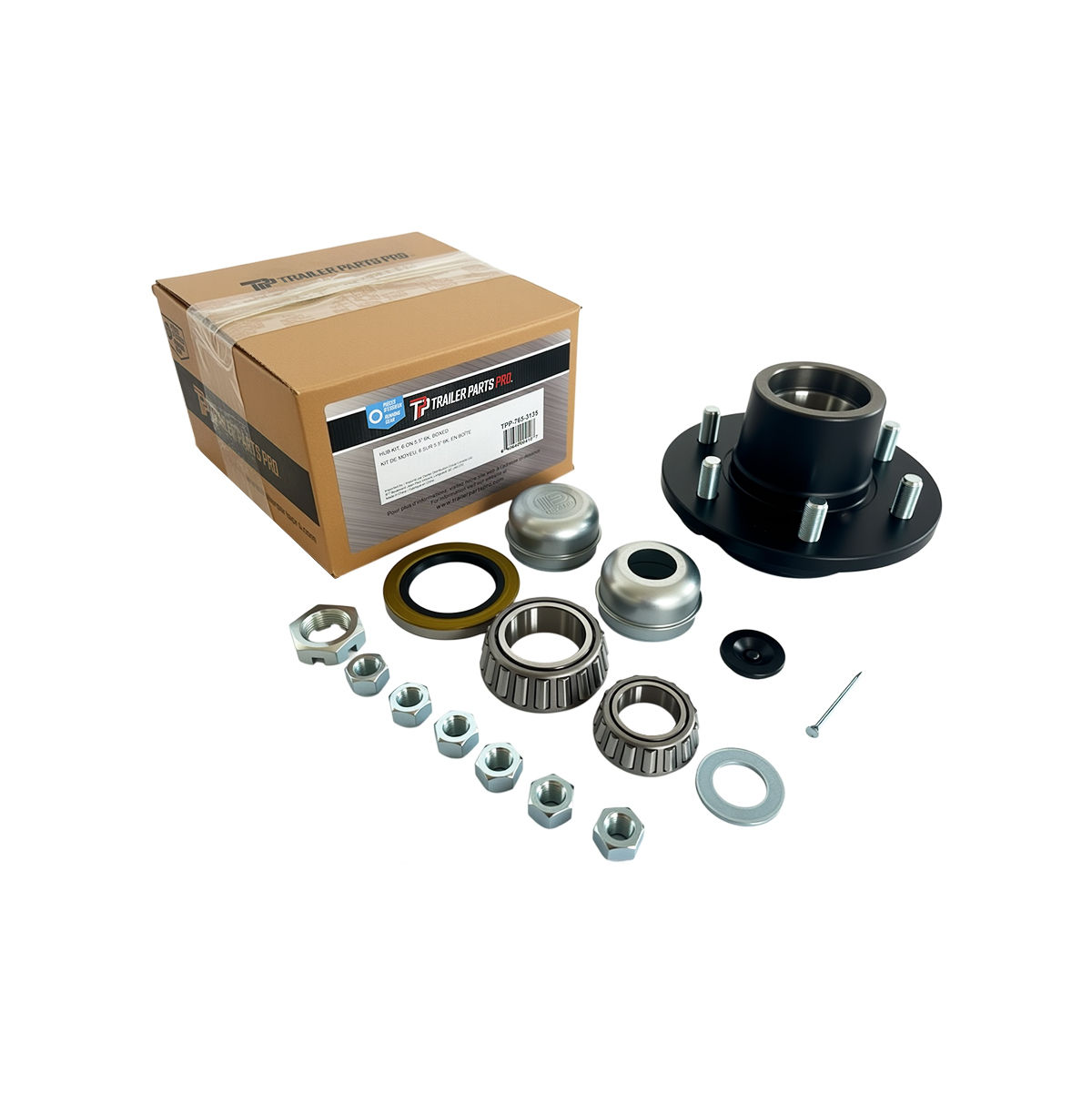 Trailer Parts Pro™ Idler Hub Kit, 6,000 Lbs, 6 on 6.5" Bolt Pattern, Comes with Bearings, Races, Grease Seal, Grease Cap, E-Z Lube® Grease Cap and Plug, Wheel Nuts, Spindle Nut, Spindle Washer