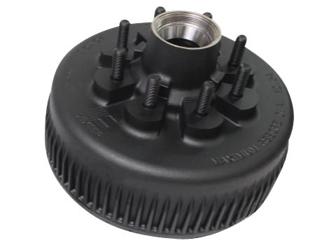Dexter® One Piece Hub-Drum with Studs and Races Only, 8,000 Lbs Capacity Per Pair (4,000 Lbs Each), 5/8" Studs, Oil Bath Applications, 4.75" Pilot, 8 On 6.5" Bolt Pattern, ABS Compatible