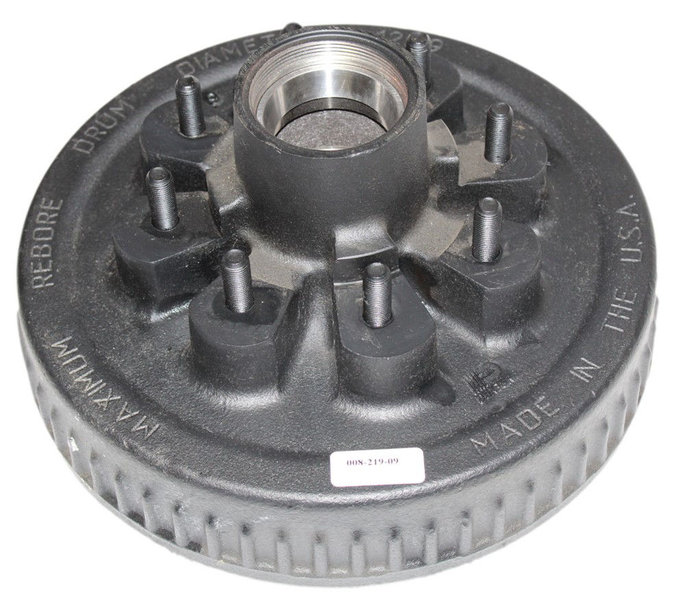 Dexter® One Piece Hub-Drum with Studs and Races Only, 7,000 Lbs Capacity Per Pair (3,500 Lbs Each), Compatible with 7,000 Lbs or #12 Torflex Axles, 1/2" Studs, Oil Bath Lubrication Applications, 8 On 6.5" Bolt Pattern
