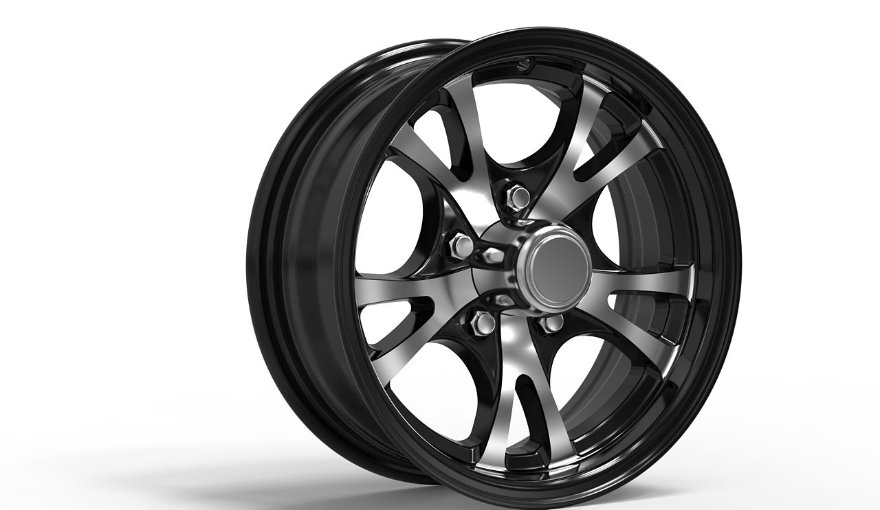 Aluminum Trailer Wheel, 14 x 5.5", 5 on 4.5" Bolt Pattern, 3.19" Pilot, SA001 Style, Black with Machine Lip