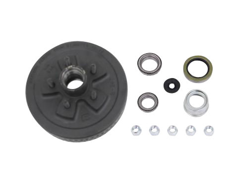 Dexter One Piece Hub-Drum Kit. Compatable With 3,500 Lbs and #10 Torflex Axles with E-Z-Lube Spindles, 5 on 4.5" Bolt Pattern,1/2" Studs, 3,500 lbs Capacity Per Pair (1,750 Lbs Each), Grease Lubrication. Comes With Bearings, Grease Seal, E-Z Lube Grease Cap and Plug, Wheel Nuts