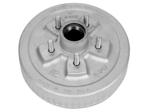 Dexter® One Piece Hub-Drum with Studs and Races Only, 3,500 Lbs Capacity Per Pair (1,750 Lbs Each), Compatible with 3,500 Lbs or #10 Torflex Axles, 1/2" Studs, Grease Lubrication Applications, 5 on 4.5" Bolt Pattern - Dexter Gal-Dex Galvanized Coating