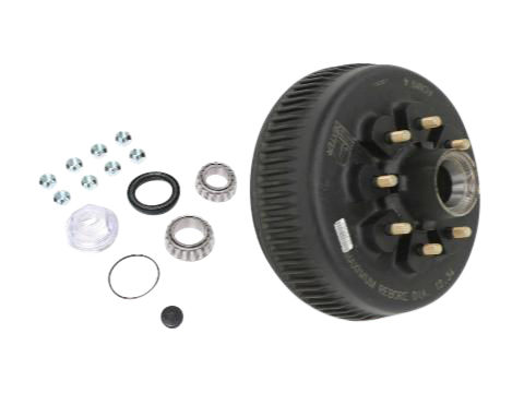 Dexter One Piece Hub-Drum Kit. Compatable With 8,000 Lbs Axles, 8 on 6.5" Bolt Pattern, 9/16" Studs, 8,000 lbs Capacity Per Pair (4,000 Lbs Each), Oil Bath Lubrication, Comes With Bearings,Oil Seal, Oil Cap and Plug, Coned Wheel Nuts, 4.56" Pilot