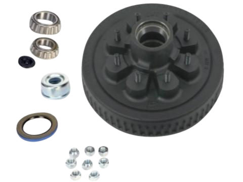 Dexter One Piece Hub-Drum Kit. Compatable With 7,000 Lbs and #12 Torflex Axles with E-Z Lube Spindles, 8 on 6.5" Bolt Pattern, 1/2" Studs, 7,000 lbs Capacity Per Pair (3,500 Lbs Each), Grease Lubrication. Comes With Bearings, Grease Seal, E-Z Lube Grease Cap and Plug, Wheel Nuts