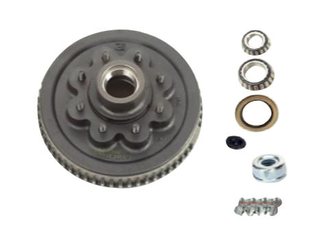 Dexter One Piece Hub-Drum Kit. Compatable With 7,000 Lbs and #12 Torflex Axles with E-Z Lube Spindles, 8 on 6.5" Bolt Pattern, 5/8" Studs, 7,000 lbs Capacity Per Pair (3,500 Lbs Each), Grease Lubrication. Comes With Bearings, Grease Seal, E-Z Lube Grease Cap and Plug, Wheel Nuts