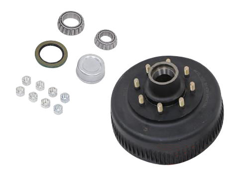 Dexter Hub-Drum Kit. 7,200 Lbs Capacity per Pair (3,600 Lbs Each), 8 on 6.5" Bolt Pattern, 9/16" Studs, Grease Lubrication. Comes With Bearings,Greasel Seal, Grease Cap, Wheel Nuts