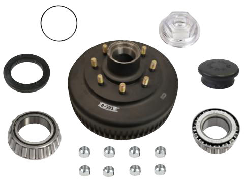Dexter Hub-Drum Kit. 7,200 Lbs Capacity per Pair (3,600 Lbs Each), 8 on 6.5" Bolt Pattern, 5/8" Studs, 4.75 Pilot, Oil Bath Lubrication. Comes with Bearings, Oil Seal, Oil Cap and Plug, Flange Wheel Nuts