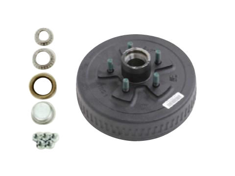 Dexter One Piece Hub-Drum Kit. Compatable with 3,000 Lbs and #10L Axles. 3,000 Lbs Capacity per Pair (1,500 Lbs Each), 5 on 4.5" Bolt Pattern, 1/2" Studs, Comes With Bearings, Grease Seal, Grease Cap, Wheel Nuts
