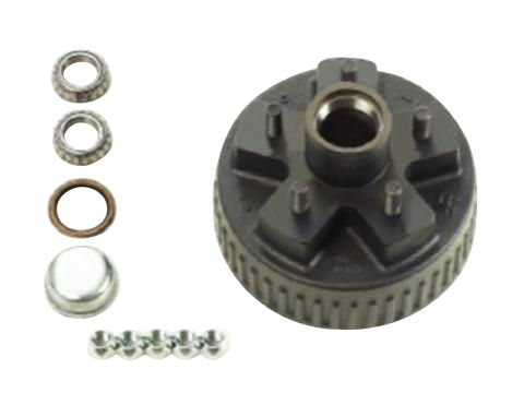 Dexter One Piece Hub-Drum Kit. Compatable With 2,200 Lbs Electric Brake Axles, 5 on 4.5" Bolt Pattern,1/2" Studs, 2,200 lbs Capacity Per Pair (1,100 Lbs Each), Grease Lubrication. Comes With Bearings, Grease Seal, Grease Cap, Wheel Nuts