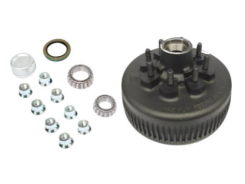 Dexter One Piece Hub-Drum Kit. Compatable With 8,000 Lbs Axles, 8 on 6.5" Bolt Pattern, 5/8" Studs, 8,000 lbs Capacity Per Pair (4,000 Lbs Each), Grease Lubrication, Comes With Bearings, Grease Seal, Grease Cap, Flanged Wheel Nuts, 4.75" Pilot