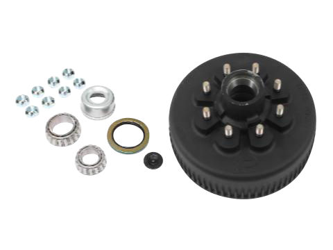 Dexter One Piece Hub-Drum Kit. Compatable With 8,000 Lbs Axles with E-Z Lube Spindles, 8 on 6.5" Bolt Pattern, 9/16" Studs, 8,000 lbs Capacity Per Pair (4,000 Lbs Each), Grease Lubrication, Comes With Bearings, Grease Seal, E-Z Lube Grease Cap, Coned Wheel Nuts, 4.75" Pilot, ABS Compatable