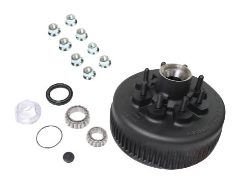 Dexter One Piece Hub-Drum Kit. Compatable With 8,000 Lbs Axles, 8 on 6.5" Bolt Pattern, 5/8" Studs, 8,000 lbs Capacity Per Pair (4,000 Lbs Each), Oil Bath Lubrication, Comes With Bearings, Oil Seal, Oil Cap and Plug, Flanged Wheel Nuts, 4.75" Pilot, ABS Compatable