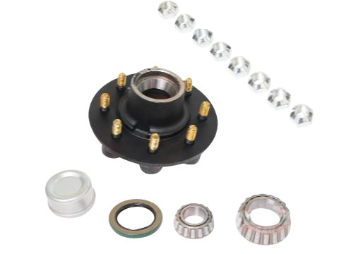 Dexter® Idler Hub Kit, 8,000 Lbs, 8 on 6.5" Bolt Pattern, 9/16" Studs, 8,000 Lb Capacity per Pair, Grease Lubrication, 4.75" Pilot, Comes with Bearings, Races, Grease Seal, Grease Cap, Coned Wheel Nuts