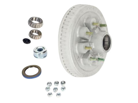 Dexter One Piece Hub-Drum Kit. Compatable With 7,000 Lbs and #12 Torflex Axles with E-Z Lube Spindles, 8 on 6.5" Bolt Pattern, 1/2" Studs, 7,000 lbs Capacity Per Pair (3,500 Lbs Each), Grease Lubrication. Comes With Bearings, Grease Seal, E-Z Lube Grease Cap and Plug, Wheel Nuts, Gal-Dex Coating