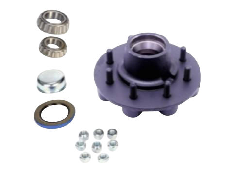 Dexter® Idler Hub Kit, 7,000 Lbs, 8 on 6.5" Bolt Pattern, 1/2" Studs, 7,000 Lb Capacity per Pair, Grease Lubrication, Comes with Bearings, Races, Grease Seal, Grease Cap, Wheel Nuts