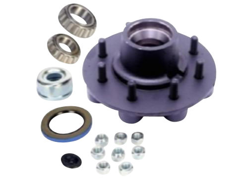 Dexter® Idler Hub Kit, 7,000 Lbs, Compatable with 7,000 Lbs Axles with E-Z Lube® Spindles, 8 on 6.5" Bolt Pattern, 1/2" Studs, 7,000 Lb Capacity per Pair, Grease Lubrication, Comes with Bearings, Races, Grease Seal, E-Z Lube® Grease Cap and Plug, Wheel Nuts