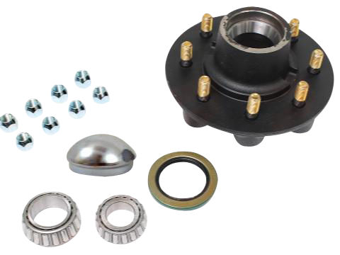 Dexter® Idler Hub Kit, 7,000 Lbs, 8 on 6.5" Bolt Pattern, 9/16" Studs, 7,000 Lb Capacity per Pair, Grease Lubrication, Comes with Bearings, Races, Grease Seal, Grease Cap, Wheel Nuts