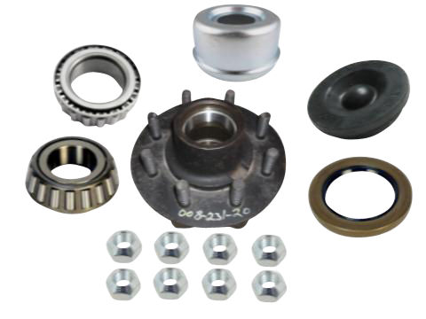 Dexter® Idler Hub Kit, 7,000 Lbs, Compatable with 7,000 Lbs Axles with E-Z Lube® Spindles, 8 on 6.5" Bolt Pattern, 5/8" Studs, 7,000 Lb Capacity per Pair, Grease Lubrication, Comes with Bearings, Races, Grease Seal, E-Z Lube® Grease Cap and Plug, Wheel Nuts