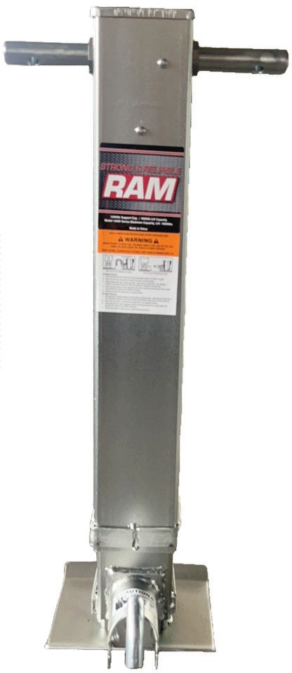 Ram Drop Leg Jack, Medium Duty Jack, 12,000 Lbs Support, 10,000 Lbs Lift, Side Wind, Front Pin, Spring Return, with Handle, Zinc Plated