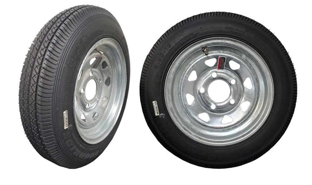 Tire & Wheel Assembly, 4.80-12C Synergy bias tire mounted on 12 x 4" 5 on 4.5" spoke galvanized steel wheel