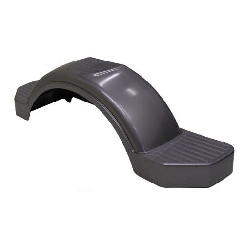 Trailer Fender, Single Axle, 10.25" W x 45" x 15", Silver Poly, W/Step, Use with 15" Tires and Wheels