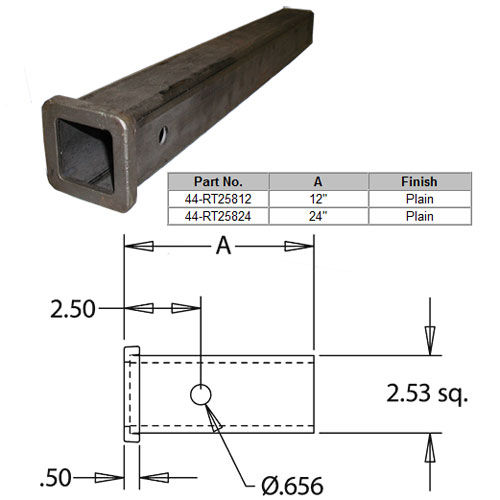 RECEIVER TUBE 12" LONG 2*2 W/5/8" HOLE