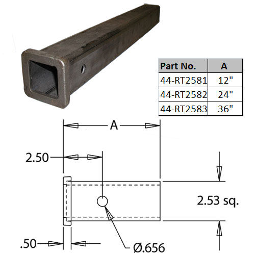 RECEIVER TUBE 36" LONG 2*2 W/5/8" HOLE
