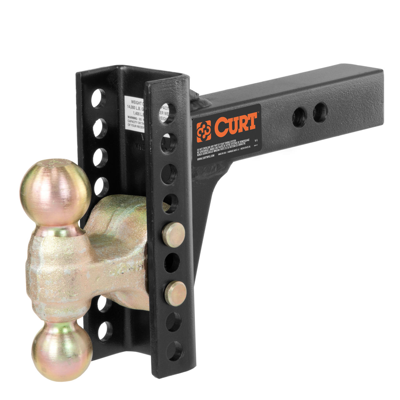 Curt® Adjustable Hitch Ball Mount, 6" Drop, 2" Receiver Size - 2", 2-5/16"Balls, 14,000 Lb /10,000 Lb Capacity, Black