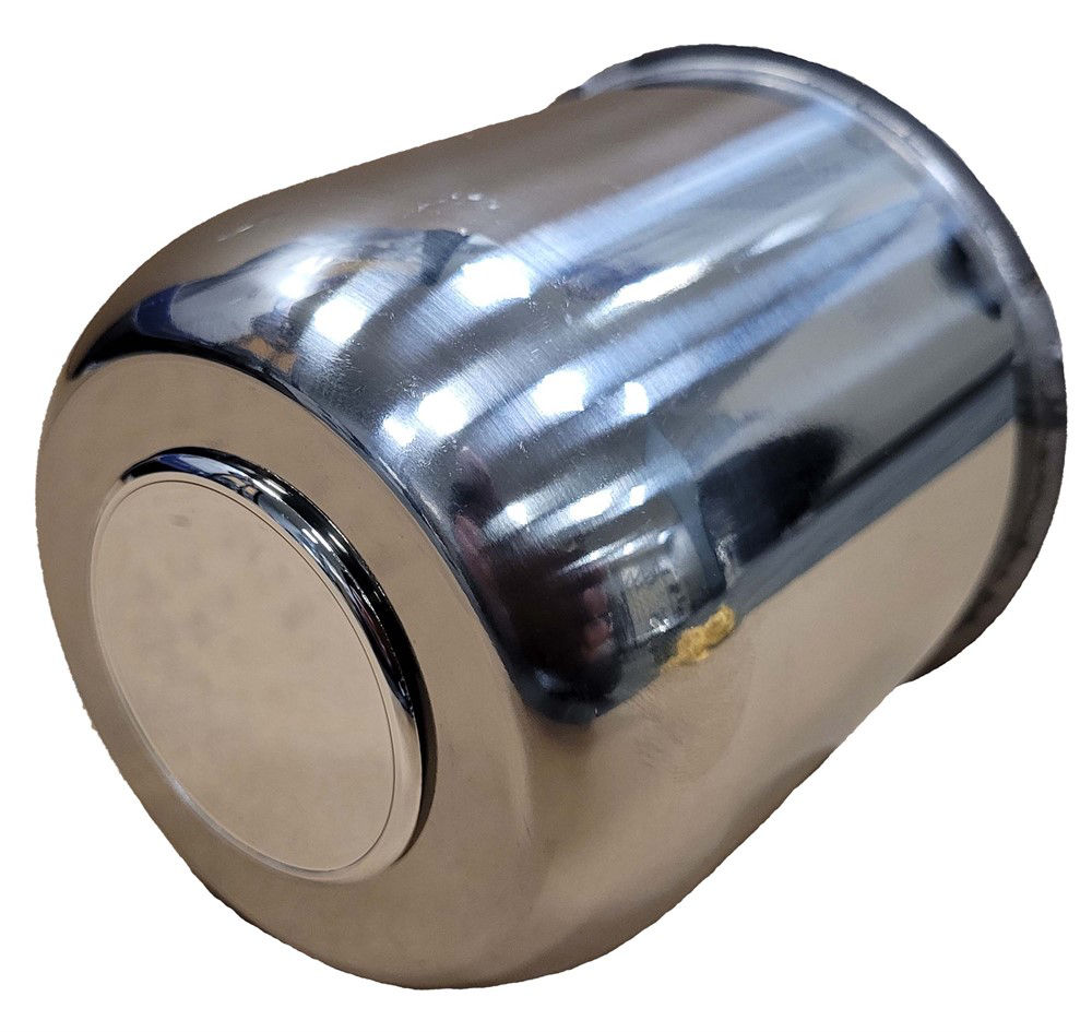 Stainless steel center cap. A simple upgrade that improves the look of your trailer wheels.